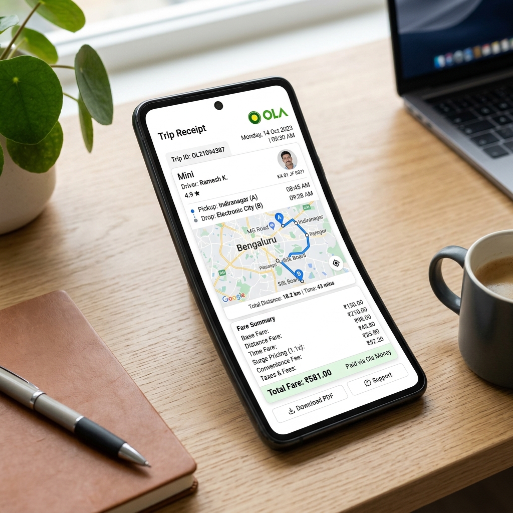 If you need a printable Ola receipt PDF, readability matters more than design. The document should make it clear when the ride happened, what route it covered, and how the total was calculated.